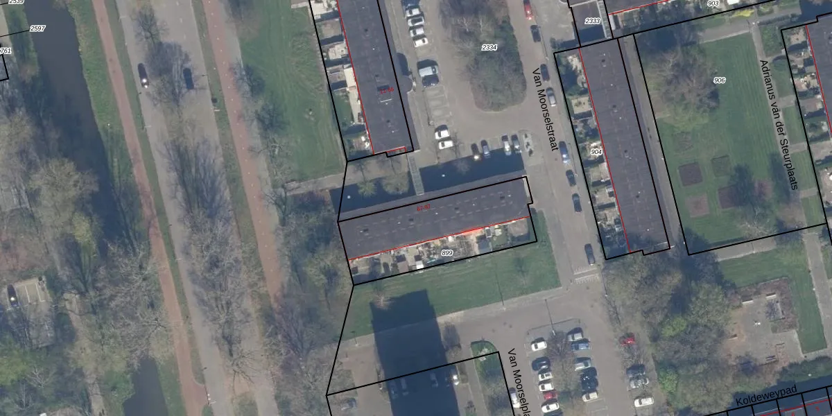 Van Moorselstraat 75 is gelegen op kadastraal perceel KLG00K899. Deze kadastrale aanduiding is uniek en wordt gebruikt door het Kadaster om eigendomsrechten en andere zakelijke rechten vast te leggen. Het perceel maakt onderdeel uit van de kadastrale gemeente Kralingen.