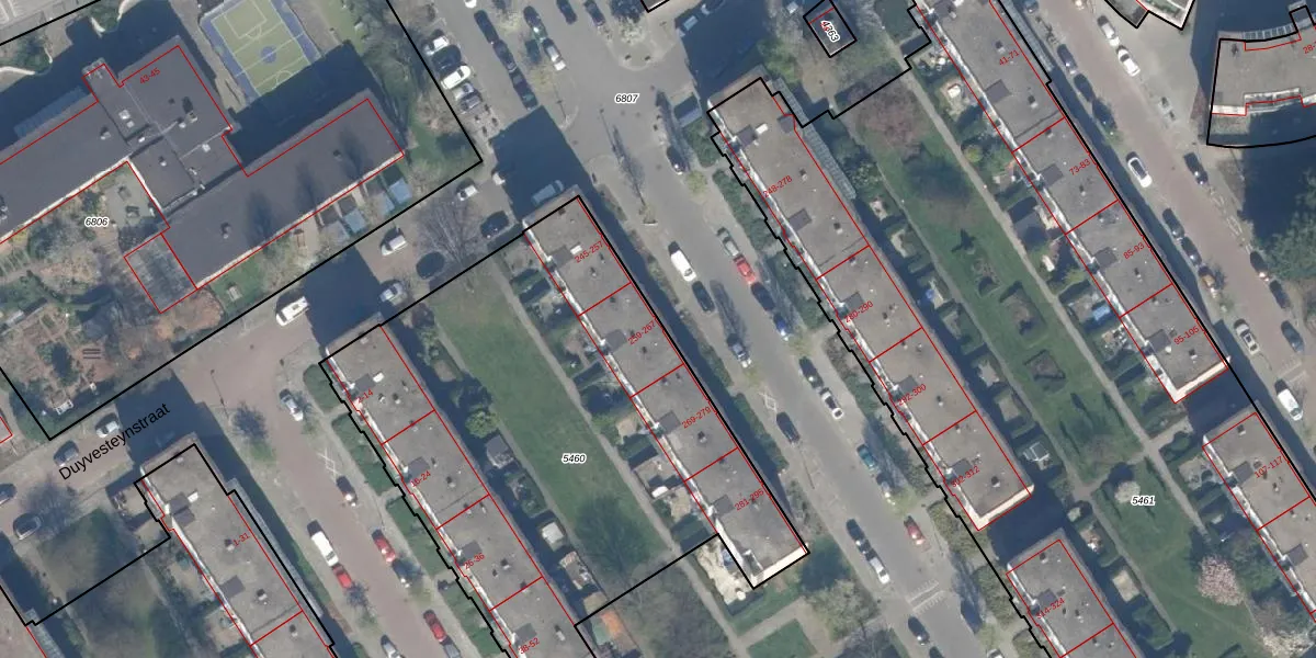Het perceel waarop Van Noortwijckstraat 263 staat heeft een oppervlakte van 2770 m². Dit is een zeer groot perceel. De perceeloppervlakte wordt geregistreerd door het Kadaster. Gedetailleerde informatie over de maten van dit perceel kunt u vinden in het rapport Kadastrale kaart met maatvoering van Van Noortwijckstraat 263.