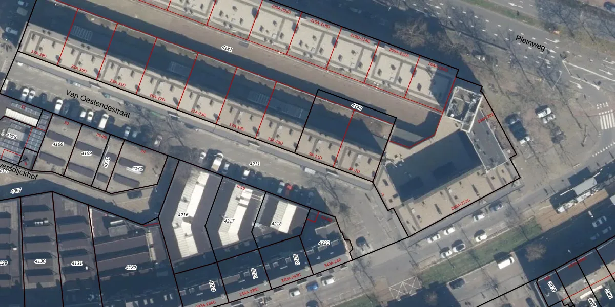 Van Oestendestraat 11-A is gelegen op kadastraal perceel CLS00E4142. Deze kadastrale aanduiding is uniek en wordt gebruikt door het Kadaster om eigendomsrechten en andere zakelijke rechten vast te leggen. Het perceel maakt onderdeel uit van de kadastrale gemeente Charlois.