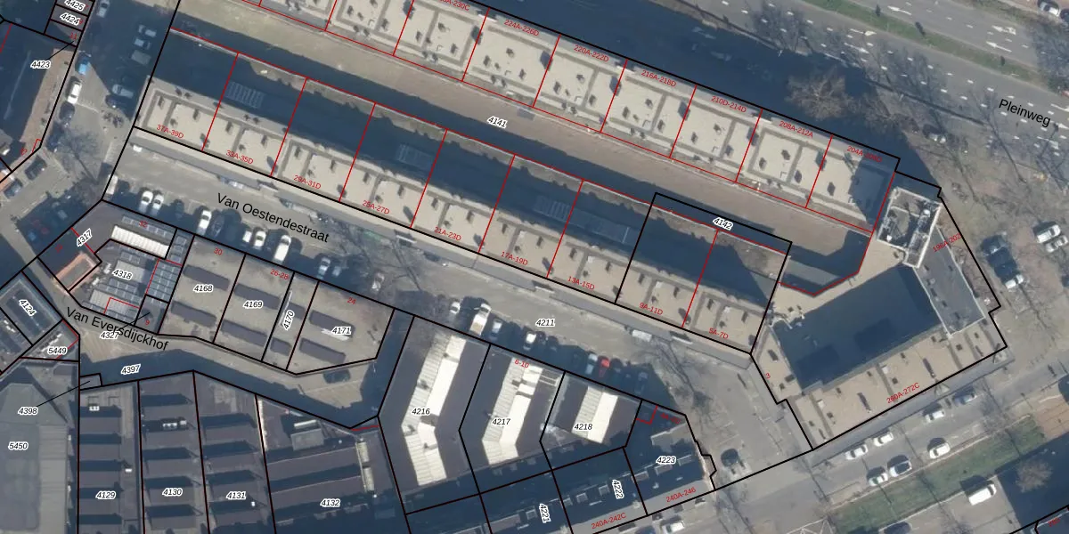 Van Oestendestraat 17-B is gelegen op kadastraal perceel CLS00E4141. Deze kadastrale aanduiding is uniek en wordt gebruikt door het Kadaster om eigendomsrechten en andere zakelijke rechten vast te leggen. Het perceel maakt onderdeel uit van de kadastrale gemeente Charlois.