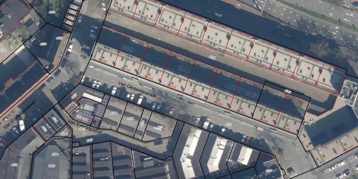 Van Oestendestraat 25-D is gelegen op kadastraal perceel CLS00E4141. Deze kadastrale aanduiding is uniek en wordt gebruikt door het Kadaster om eigendomsrechten en andere zakelijke rechten vast te leggen. Het perceel maakt onderdeel uit van de kadastrale gemeente Charlois.