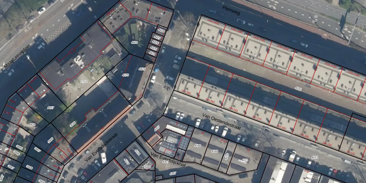 Van Oestendestraat 39-D is gelegen op kadastraal perceel CLS00E4141. Deze kadastrale aanduiding is uniek en wordt gebruikt door het Kadaster om eigendomsrechten en andere zakelijke rechten vast te leggen. Het perceel maakt onderdeel uit van de kadastrale gemeente Charlois.