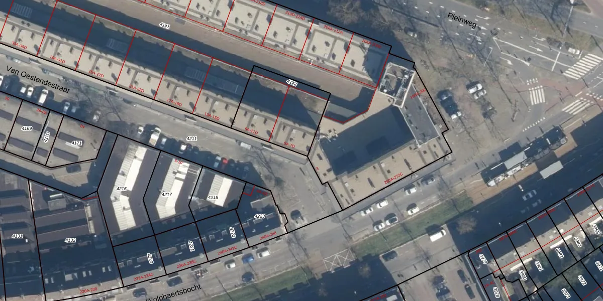 Van Oestendestraat 5-C is gelegen op kadastraal perceel CLS00E4142. Deze kadastrale aanduiding is uniek en wordt gebruikt door het Kadaster om eigendomsrechten en andere zakelijke rechten vast te leggen. Het perceel maakt onderdeel uit van de kadastrale gemeente Charlois.