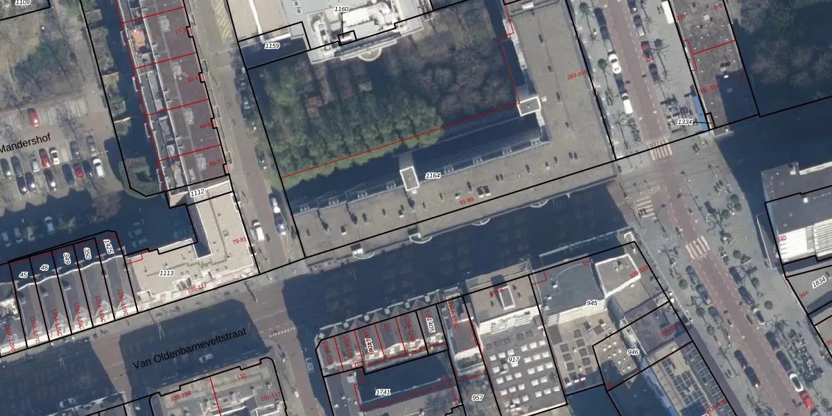 Van Oldenbarneveltstraat 93 is gelegen op kadastraal perceel RTD04AF1164. Deze kadastrale aanduiding is uniek en wordt gebruikt door het Kadaster om eigendomsrechten en andere zakelijke rechten vast te leggen. Het perceel maakt onderdeel uit van de kadastrale gemeente Rotterdam.