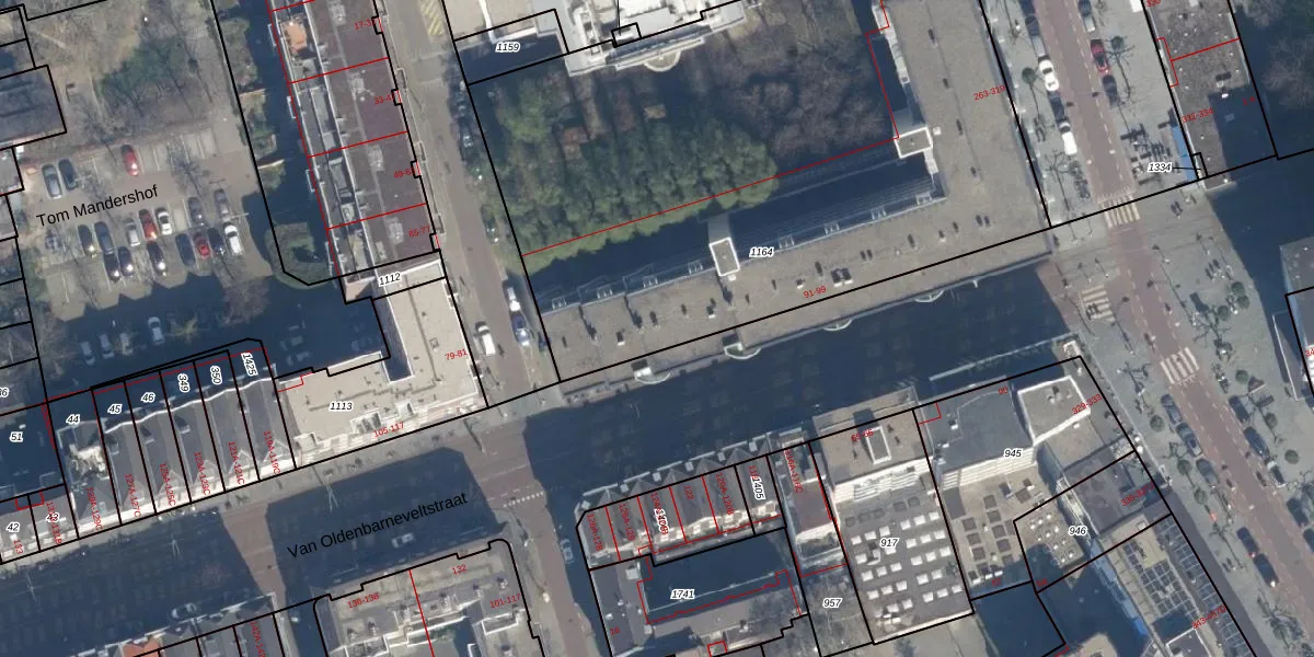 Van Oldenbarneveltstraat 97 is gelegen op kadastraal perceel RTD04AF1164. Deze kadastrale aanduiding is uniek en wordt gebruikt door het Kadaster om eigendomsrechten en andere zakelijke rechten vast te leggen. Het perceel maakt onderdeel uit van de kadastrale gemeente Rotterdam.