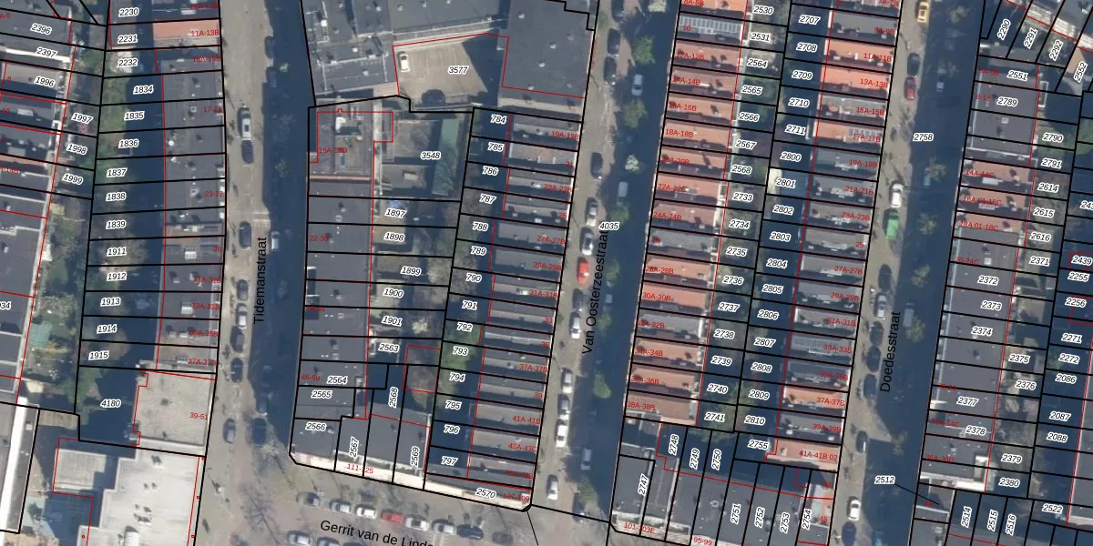 Het perceel waarop Van Oosterzeestraat 29-A staat heeft een oppervlakte van 97 m². Dit is een klein perceel. De perceeloppervlakte wordt geregistreerd door het Kadaster. Gedetailleerde informatie over de maten van dit perceel kunt u vinden in het rapport Kadastrale kaart met maatvoering van Van Oosterzeestraat 29-A.