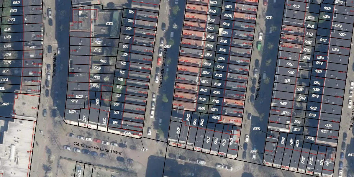 Van Oosterzeestraat 34-B is gelegen op kadastraal perceel DHV00C2739. Deze kadastrale aanduiding is uniek en wordt gebruikt door het Kadaster om eigendomsrechten en andere zakelijke rechten vast te leggen. Het perceel maakt onderdeel uit van de kadastrale gemeente Delfshaven.