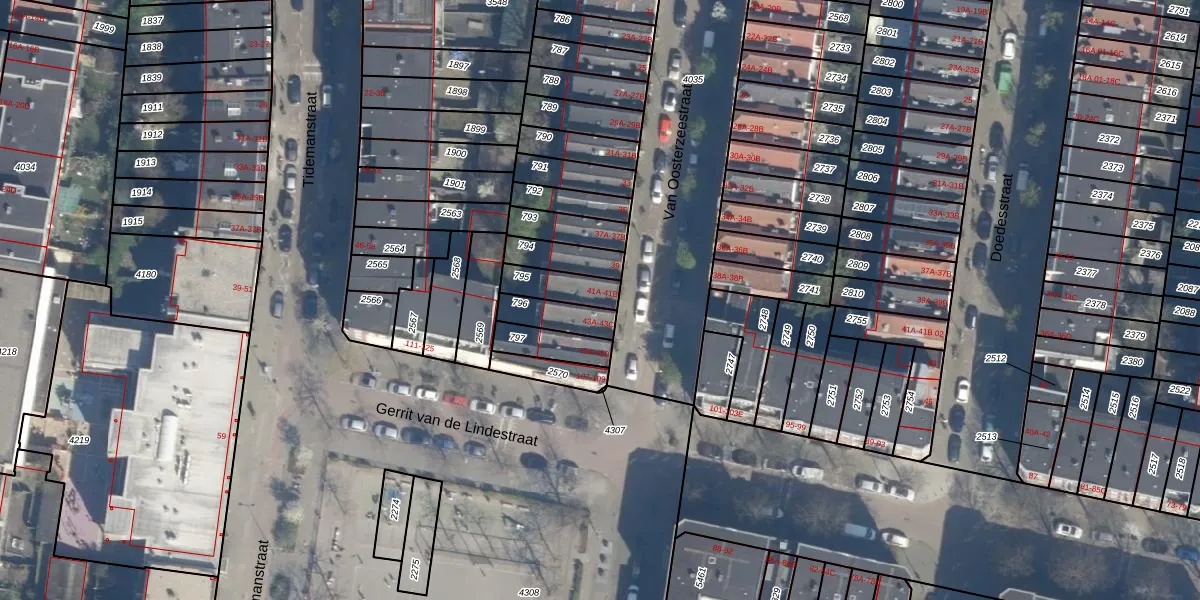Van Oosterzeestraat 41-A is gelegen op kadastraal perceel DHV00I795. Deze kadastrale aanduiding is uniek en wordt gebruikt door het Kadaster om eigendomsrechten en andere zakelijke rechten vast te leggen. Het perceel maakt onderdeel uit van de kadastrale gemeente Delfshaven.