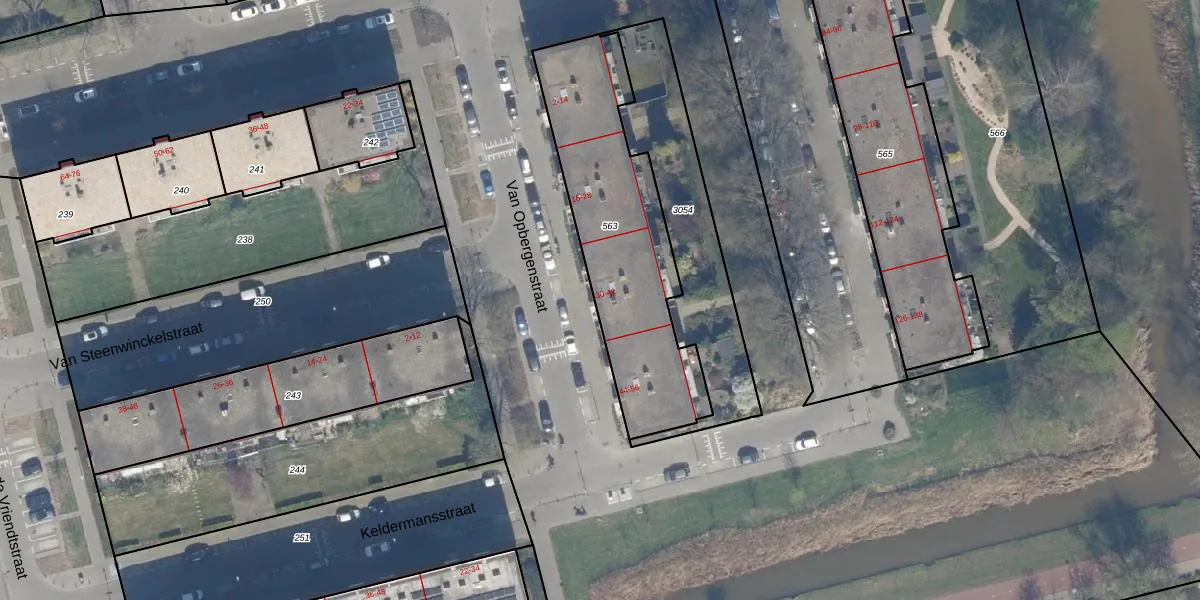 Van Opbergenstraat 34 is gelegen op kadastraal perceel KLG00K563. Deze kadastrale aanduiding is uniek en wordt gebruikt door het Kadaster om eigendomsrechten en andere zakelijke rechten vast te leggen. Het perceel maakt onderdeel uit van de kadastrale gemeente Kralingen.