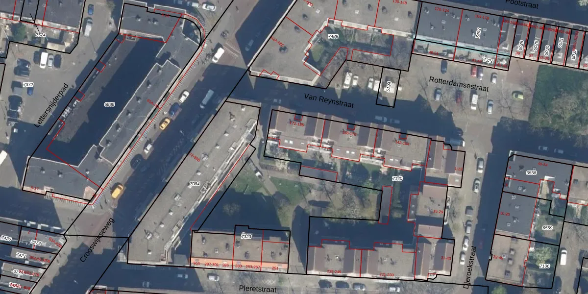 Van Reynstraat 180 is gelegen op kadastraal perceel RTD07R7140. Deze kadastrale aanduiding is uniek en wordt gebruikt door het Kadaster om eigendomsrechten en andere zakelijke rechten vast te leggen. Het perceel maakt onderdeel uit van de kadastrale gemeente Rotterdam.
