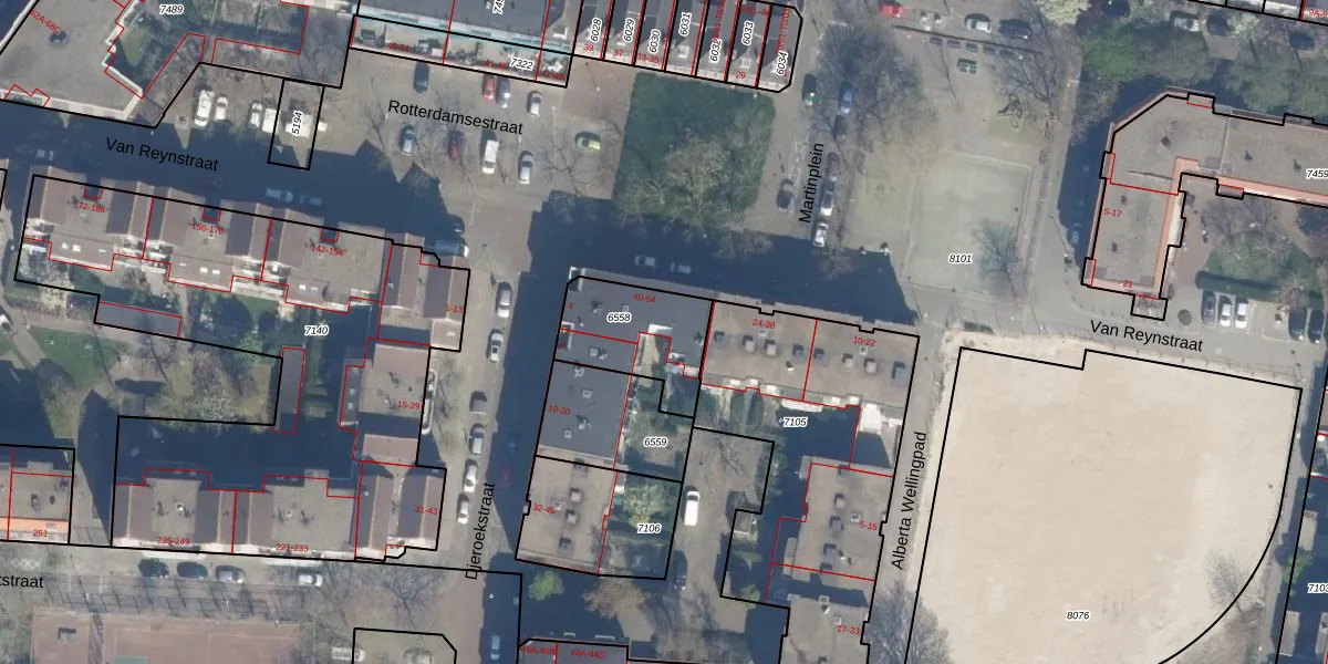Van Reynstraat 42 is gelegen op kadastraal perceel RTD07R6558. Deze kadastrale aanduiding is uniek en wordt gebruikt door het Kadaster om eigendomsrechten en andere zakelijke rechten vast te leggen. Het perceel maakt onderdeel uit van de kadastrale gemeente Rotterdam.