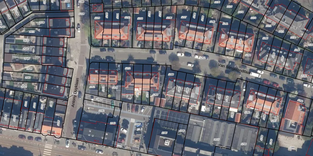 Het perceel waarop Van Slingelandtlaan 33 staat heeft een oppervlakte van 222 m². Dit is een middelgroot perceel. De perceeloppervlakte wordt geregistreerd door het Kadaster. Gedetailleerde informatie over de maten van dit perceel kunt u vinden in het rapport Kadastrale kaart met maatvoering van Van Slingelandtlaan 33.