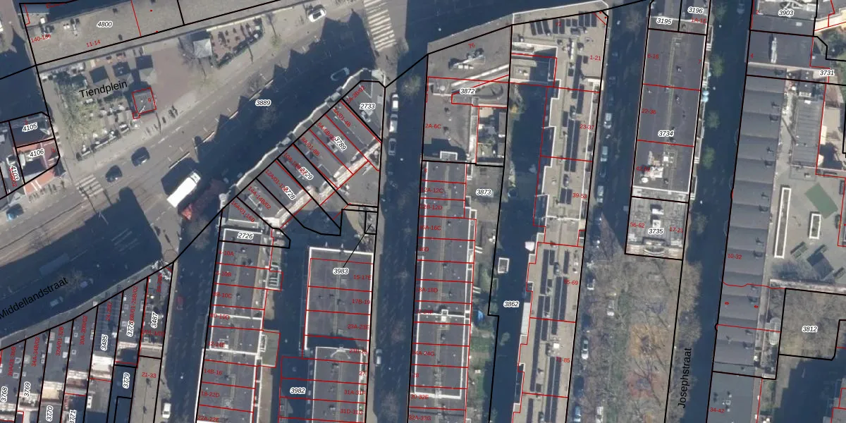 Het perceel waarop het adres ligt is DHV00-D-3873. De afkorting 'DHV00' staat voor kadastrale gemeente Delfshaven. De oppervlakte van het perceel is 1408 m². Dat is groter dan gemiddeld in Delfshaven, waar de gemiddelde perceeloppervlakte op 628,61 m² ligt. Het kleinste perceel in de kadastrale gemeente is 0 m² groot. De grootste perceeloppervlakte is 22,2 ha. Er zijn 39 adressen aanwezig op het perceel. De laatste wijziging in het de Basisregistratie Kadaster (BRK) was op 12-03-2003.