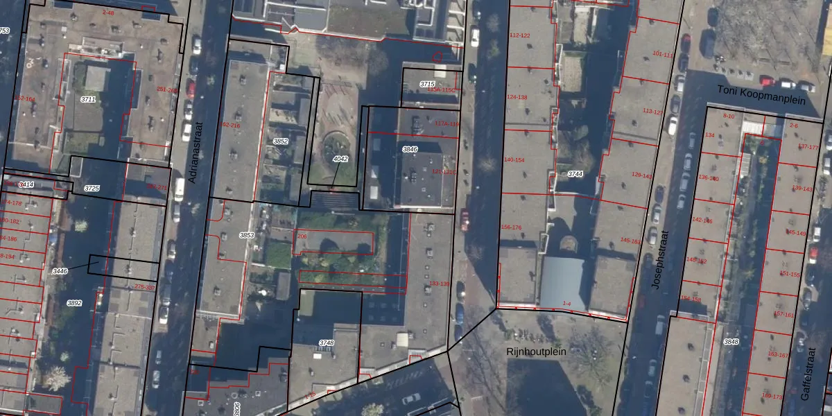Het perceel waarop het adres ligt is DHV00-D-3846. De afkorting 'DHV00' staat voor kadastrale gemeente Delfshaven. Het perceel is kleiner dan gemiddeld in Delfshaven. Het perceel is 555 m² groot, terwijl het gemiddelde ligt op 628,61 m². Het kleinste perceel in de kadastrale gemeente is 0 m² groot. De grootste perceeloppervlakte is 22,2 ha. Op het perceel zijn 15 adressen aanwezig. In de Basisregistratie Kadaster (BRK) werden de grenzen van het perceel geregistreerd op 01-12-2020.