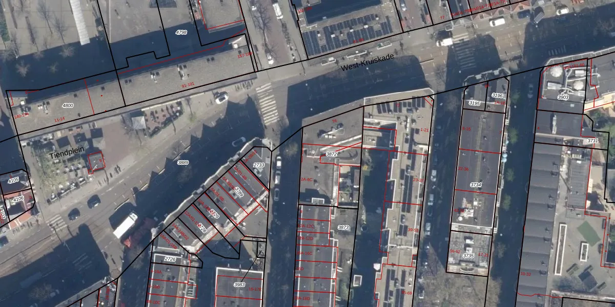 Het perceel waarop het adres ligt is DHV00-D-3872. De afkorting 'DHV00' staat voor kadastrale gemeente Delfshaven. Het perceel is 565 m² groot. Dat is kleiner dan de gemiddelde perceeloppervlakte in Delfshaven, dat op 628,89 m² ligt. Het kleinste perceel in de kadastrale gemeente is 0 m² groot. De grootste perceeloppervlakte is 22,2 ha. Op het perceel liggen in totaal 16 adressen. De laatste wijziging in het de Basisregistratie Kadaster (BRK) was op 12-03-2003.
