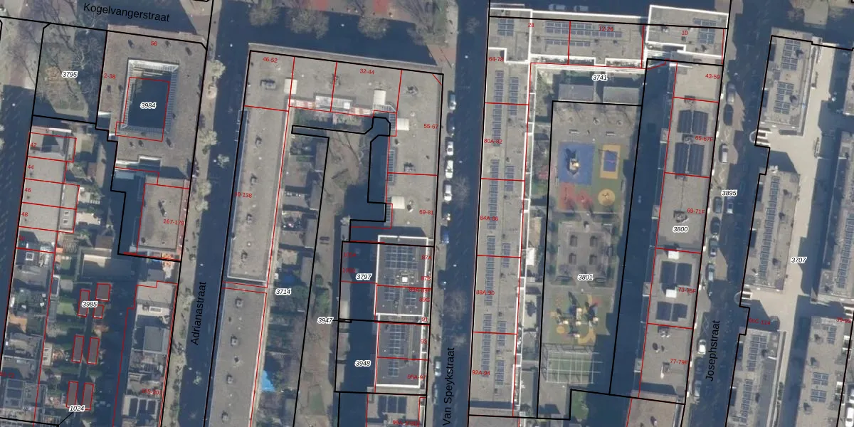Het perceel waarop Van Speykstraat 69 staat heeft een oppervlakte van 2915 m². Dit is een zeer groot perceel. De perceeloppervlakte wordt geregistreerd door het Kadaster. Gedetailleerde informatie over de maten van dit perceel kunt u vinden in het rapport Kadastrale kaart met maatvoering van Van Speykstraat 69.