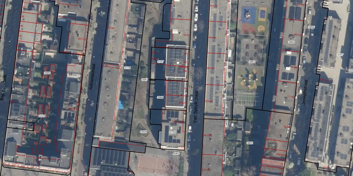 Het perceel waarop Van Speykstraat 95-C staat heeft een oppervlakte van 371 m². Dit is een groot perceel. De perceeloppervlakte wordt geregistreerd door het Kadaster. Gedetailleerde informatie over de maten van dit perceel kunt u vinden in het rapport Kadastrale kaart met maatvoering van Van Speykstraat 95-C.