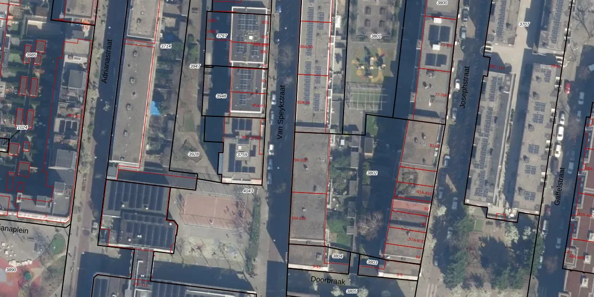 Van Speykstraat 96 is gelegen op kadastraal perceel DHV00D3802. Deze kadastrale aanduiding is uniek en wordt gebruikt door het Kadaster om eigendomsrechten en andere zakelijke rechten vast te leggen. Het perceel maakt onderdeel uit van de kadastrale gemeente Delfshaven.