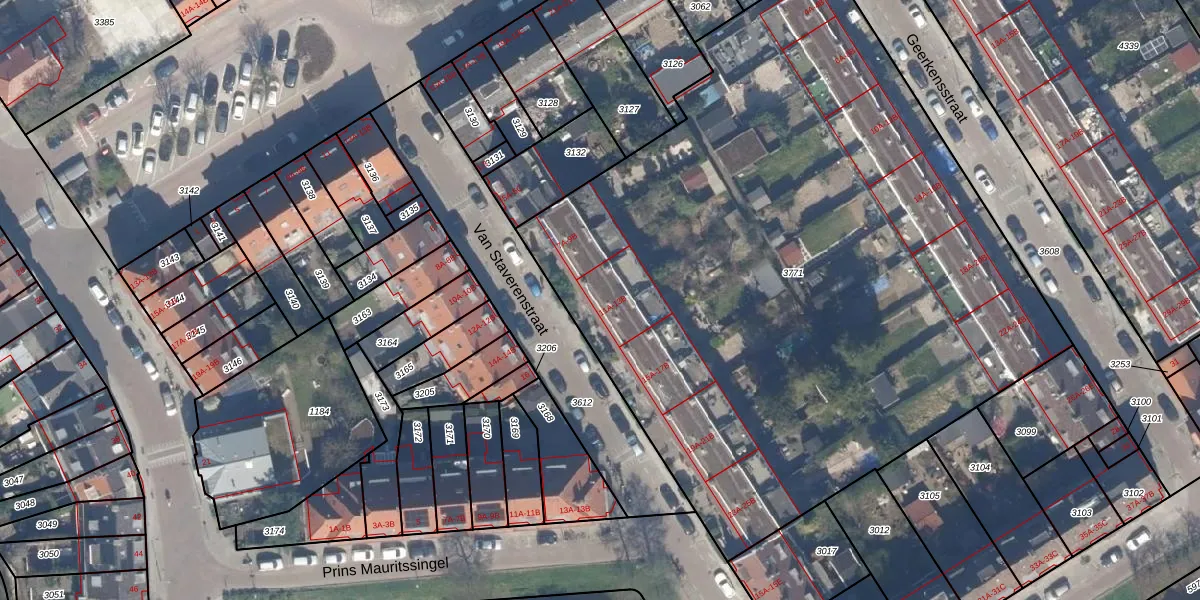 Van Staverenstraat 11-B is gelegen op kadastraal perceel OVS00C3771. Deze kadastrale aanduiding is uniek en wordt gebruikt door het Kadaster om eigendomsrechten en andere zakelijke rechten vast te leggen. Het perceel maakt onderdeel uit van de kadastrale gemeente Overschie.