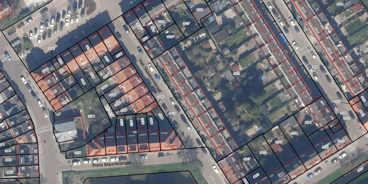 Van Staverenstraat 13-A is gelegen op kadastraal perceel OVS00C3771. Deze kadastrale aanduiding is uniek en wordt gebruikt door het Kadaster om eigendomsrechten en andere zakelijke rechten vast te leggen. Het perceel maakt onderdeel uit van de kadastrale gemeente Overschie.