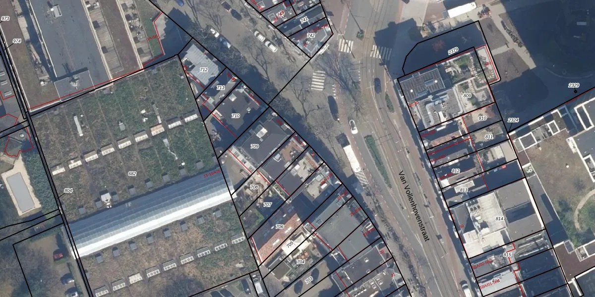 Van Vollenhovenstraat 17-C is gelegen op kadastraal perceel RTD04AG708. Deze kadastrale aanduiding is uniek en wordt gebruikt door het Kadaster om eigendomsrechten en andere zakelijke rechten vast te leggen. Het perceel maakt onderdeel uit van de kadastrale gemeente Rotterdam.