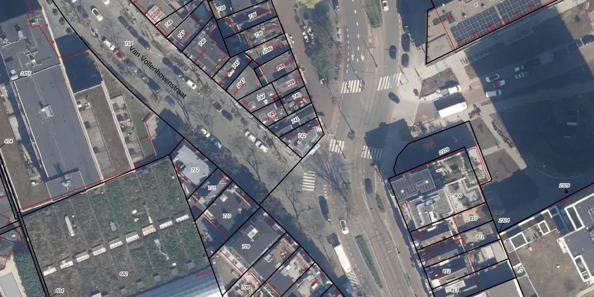 Van Vollenhovenstraat 34 is gelegen op kadastraal perceel RTD04AG742. Deze kadastrale aanduiding is uniek en wordt gebruikt door het Kadaster om eigendomsrechten en andere zakelijke rechten vast te leggen. Het perceel maakt onderdeel uit van de kadastrale gemeente Rotterdam.