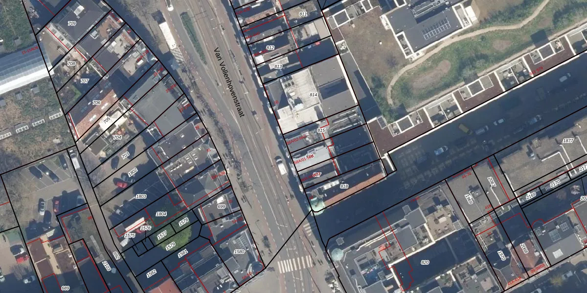 Van Vollenhovenstraat 56-B is gelegen op kadastraal perceel RTD04AG815. Deze kadastrale aanduiding is uniek en wordt gebruikt door het Kadaster om eigendomsrechten en andere zakelijke rechten vast te leggen. Het perceel maakt onderdeel uit van de kadastrale gemeente Rotterdam.