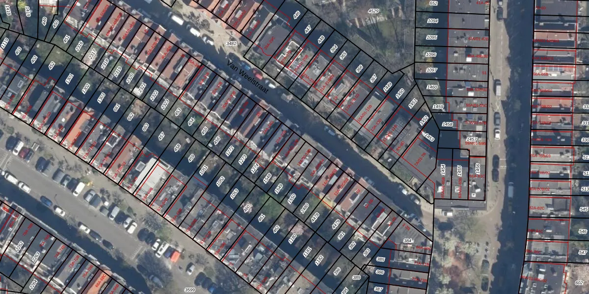 Van Weelstraat 20-A-03 is gelegen op kadastraal perceel DHV00I1548. Deze kadastrale aanduiding is uniek en wordt gebruikt door het Kadaster om eigendomsrechten en andere zakelijke rechten vast te leggen. Het perceel maakt onderdeel uit van de kadastrale gemeente Delfshaven.