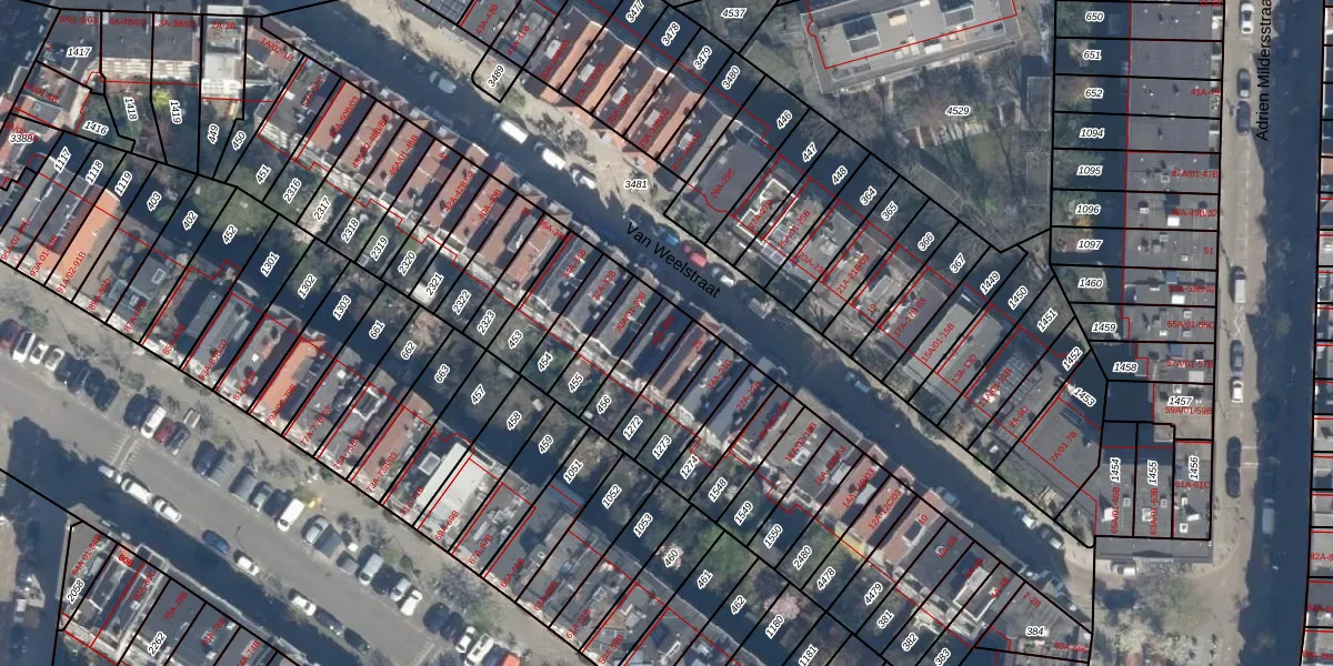 Van Weelstraat 28-A is gelegen op kadastraal perceel DHV00I456. Deze kadastrale aanduiding is uniek en wordt gebruikt door het Kadaster om eigendomsrechten en andere zakelijke rechten vast te leggen. Het perceel maakt onderdeel uit van de kadastrale gemeente Delfshaven.