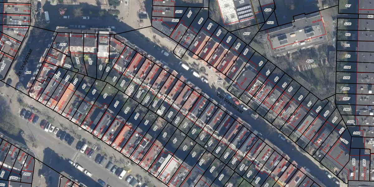 Van Weelstraat 38 is gelegen op kadastraal perceel DHV00I2322. Deze kadastrale aanduiding is uniek en wordt gebruikt door het Kadaster om eigendomsrechten en andere zakelijke rechten vast te leggen. Het perceel maakt onderdeel uit van de kadastrale gemeente Delfshaven.