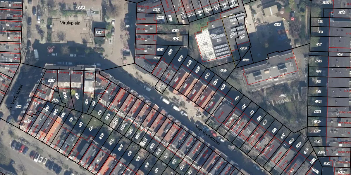 Van Weelstraat 39-B-01 is gelegen op kadastraal perceel DHV00I3476. Deze kadastrale aanduiding is uniek en wordt gebruikt door het Kadaster om eigendomsrechten en andere zakelijke rechten vast te leggen. Het perceel maakt onderdeel uit van de kadastrale gemeente Delfshaven.