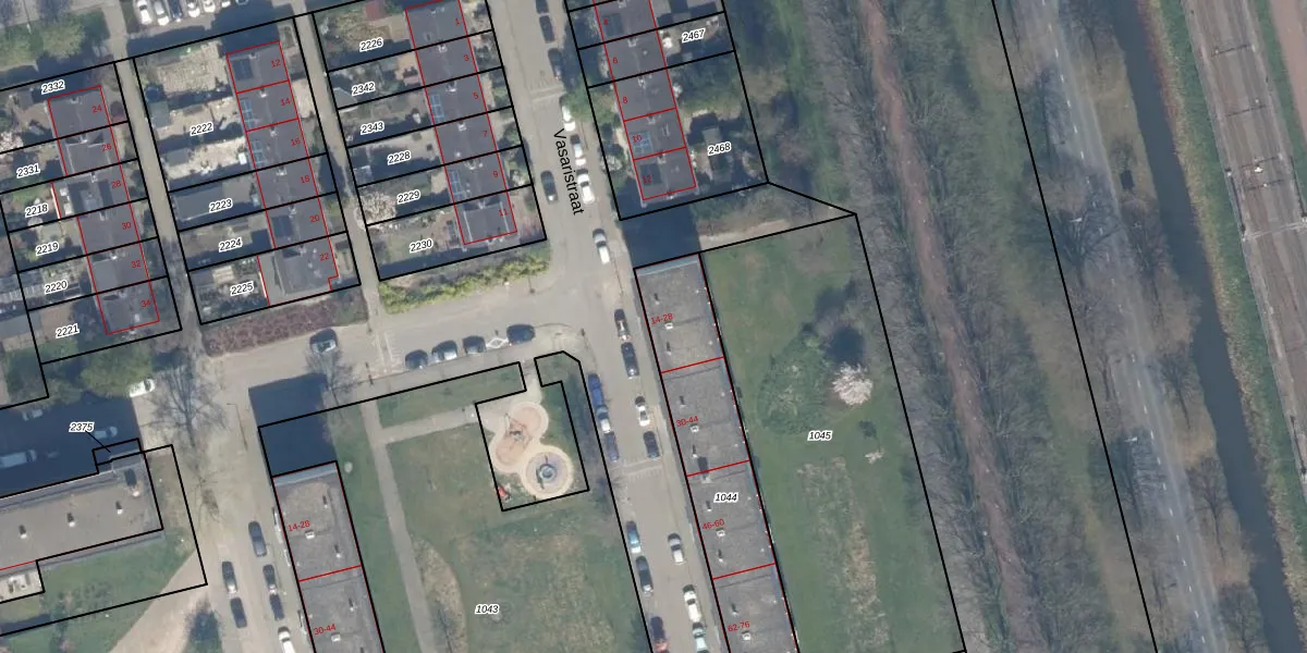 Vasaristraat 24 is gelegen op kadastraal perceel KLG00K1044. Deze kadastrale aanduiding is uniek en wordt gebruikt door het Kadaster om eigendomsrechten en andere zakelijke rechten vast te leggen. Het perceel maakt onderdeel uit van de kadastrale gemeente Kralingen.