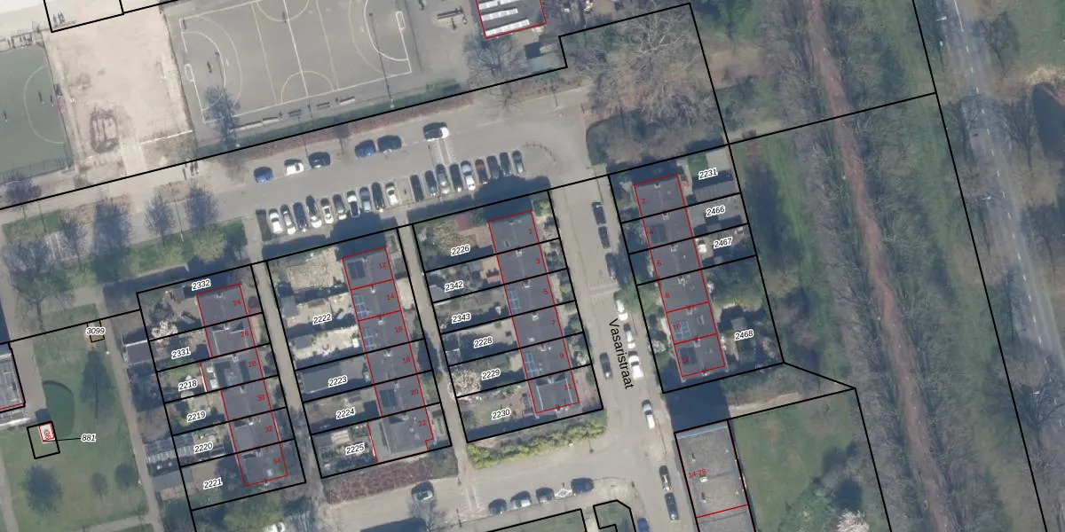 Vasaristraat 3 is gelegen op kadastraal perceel KLG00K2342. Deze kadastrale aanduiding is uniek en wordt gebruikt door het Kadaster om eigendomsrechten en andere zakelijke rechten vast te leggen. Het perceel maakt onderdeel uit van de kadastrale gemeente Kralingen.