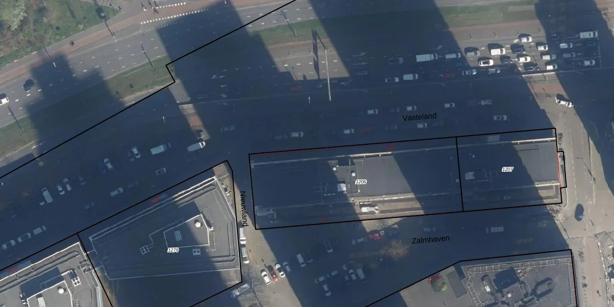 Het perceel waarop Vasteland 30 staat heeft een oppervlakte van 1654 m². Dit is een zeer groot perceel. De perceeloppervlakte wordt geregistreerd door het Kadaster. Gedetailleerde informatie over de maten van dit perceel kunt u vinden in het rapport Kadastrale kaart met maatvoering van Vasteland 30.