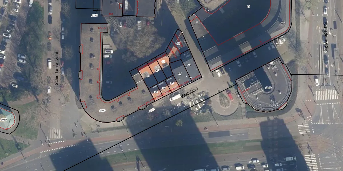 Het perceel waarop Vasteland 31-A staat heeft een oppervlakte van 43 m². Dit is een klein perceel. De perceeloppervlakte wordt geregistreerd door het Kadaster. Gedetailleerde informatie over de maten van dit perceel kunt u vinden in het rapport Kadastrale kaart met maatvoering van Vasteland 31-A.