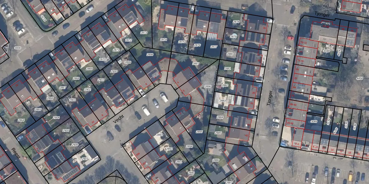 Gebruik de zoekbalk of klik op een perceel voor informatie over de adressen binnen dit perceel.
