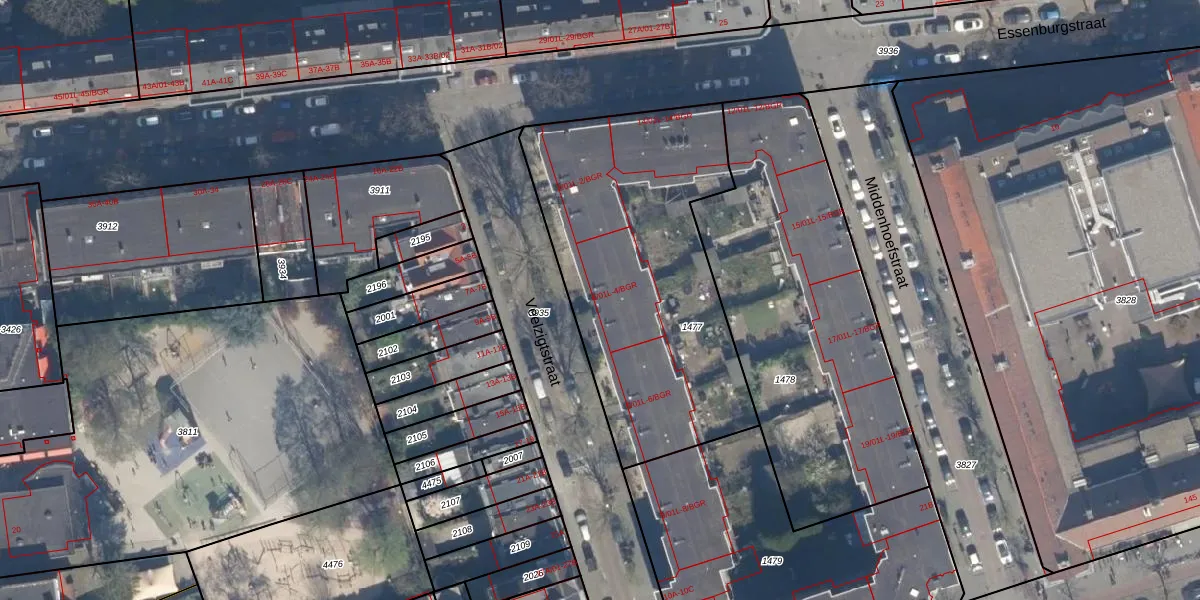Het perceel waarop het adres ligt is DHV00-I-1477. De afkorting 'DHV00' staat voor kadastrale gemeente Delfshaven. De oppervlakte van het perceel is 1506 m². Dat is groter dan gemiddeld in Delfshaven, waar de gemiddelde perceeloppervlakte op 628,61 m² ligt. Het kleinste perceel in de kadastrale gemeente is 0 m² groot. De grootste perceeloppervlakte is 22,2 ha. Op het perceel liggen in totaal 32 adressen. In de Basisregistratie Kadaster (BRK) werden de grenzen van het perceel geregistreerd op 19-03-2003.