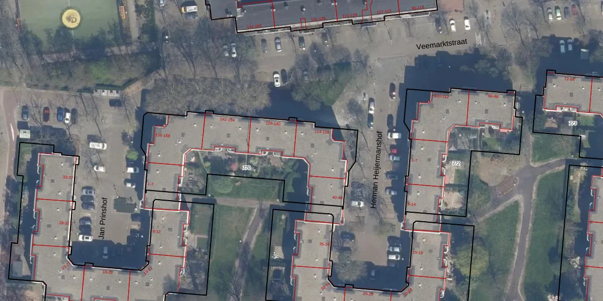 Veemarktstraat 124 is gelegen op kadastraal perceel RTD04AE770. Deze kadastrale aanduiding is uniek en wordt gebruikt door het Kadaster om eigendomsrechten en andere zakelijke rechten vast te leggen. Het perceel maakt onderdeel uit van de kadastrale gemeente Rotterdam.