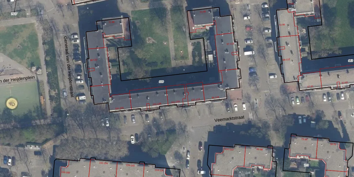 Het perceel waarop het adres ligt is RTD04-AE-939. De afkorting 'RTD04' staat voor kadastrale gemeente Rotterdam. De oppervlakte van het perceel is 2750 m². Dat is groter dan gemiddeld in Rotterdam, waar de gemiddelde perceeloppervlakte op 1239,97 m² ligt. Het grootste perceel in de kadastrale gemeente is 17,3 ha. Het kleinste perceel heeft een oppervlakte van 0 m². Op het perceel zijn 78 adressen aanwezig. De huidige grenzen van het perceel zijn digitaal in de Basisregistratie Kadaster (BRK) geregistreerd op 11-11-2005.