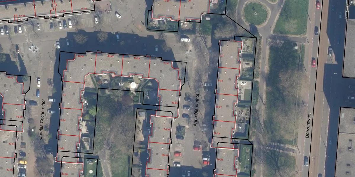 Het perceel waarop het adres ligt is RTD04-AE-775. De afkorting 'RTD04' staat voor kadastrale gemeente Rotterdam. De oppervlakte van het perceel is 2270 m². Dat is groter dan gemiddeld in Rotterdam, waar de gemiddelde perceeloppervlakte op 1239,97 m² ligt. De grootste perceeloppervlakte in de kadastrale gemeente is 17,3 ha. De kleinste oppervlakte bedraagt 0 m². Op het perceel zijn 50 adressen aanwezig. In de Basisregistratie Kadaster (BRK) werden de grenzen van het perceel geregistreerd op 11-11-2005.