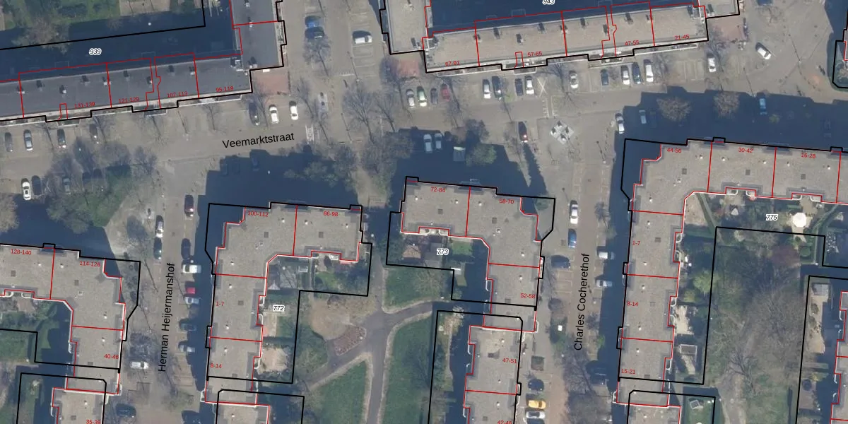 Veemarktstraat 78 is gelegen op kadastraal perceel RTD04AE773. Deze kadastrale aanduiding is uniek en wordt gebruikt door het Kadaster om eigendomsrechten en andere zakelijke rechten vast te leggen. Het perceel maakt onderdeel uit van de kadastrale gemeente Rotterdam.