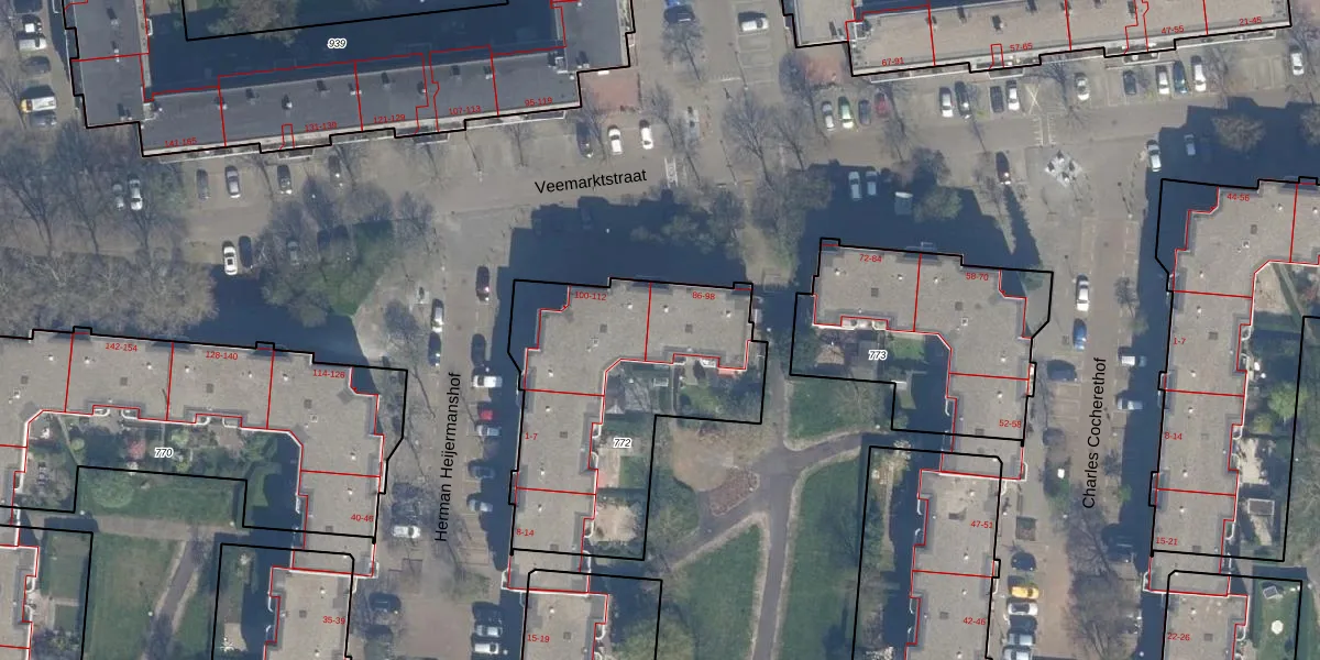 Veemarktstraat 94 is gelegen op kadastraal perceel RTD04AE772. Deze kadastrale aanduiding is uniek en wordt gebruikt door het Kadaster om eigendomsrechten en andere zakelijke rechten vast te leggen. Het perceel maakt onderdeel uit van de kadastrale gemeente Rotterdam.