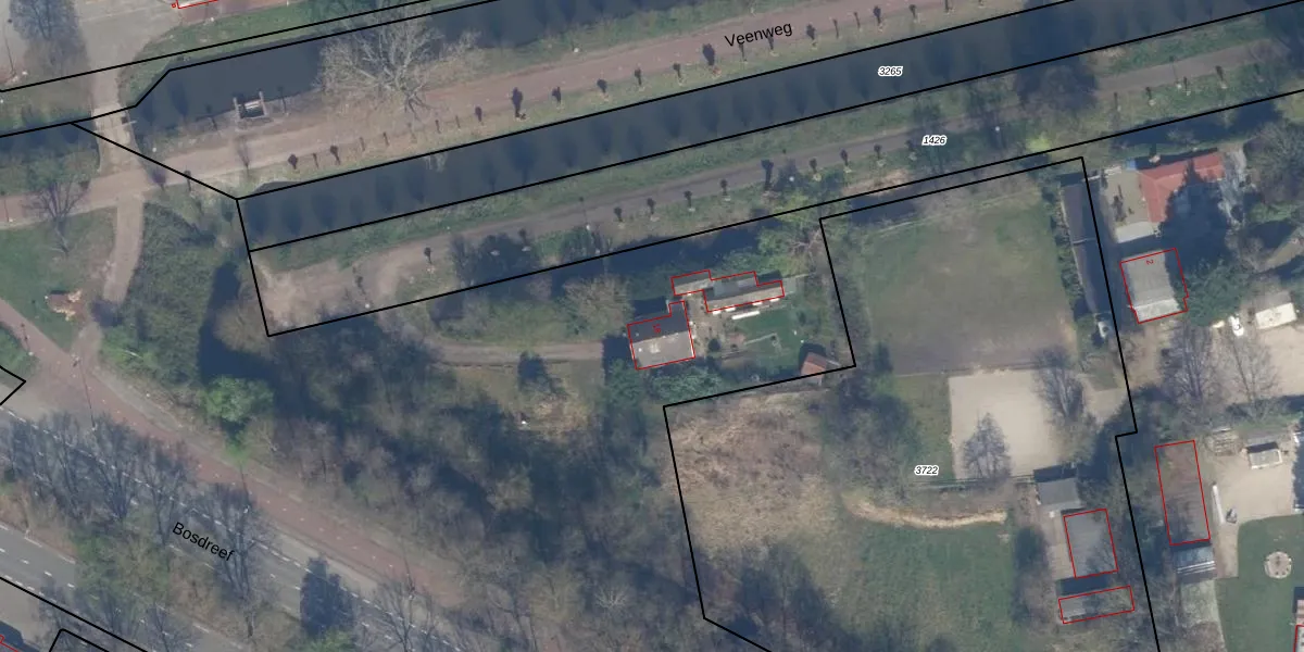 Het perceel waarop Veenweg 18 staat heeft een oppervlakte van 77,2 ha. Dit is een zeer groot perceel. De perceeloppervlakte wordt geregistreerd door het Kadaster. Gedetailleerde informatie over de maten van dit perceel kunt u vinden in het rapport Kadastrale kaart met maatvoering van Veenweg 18.