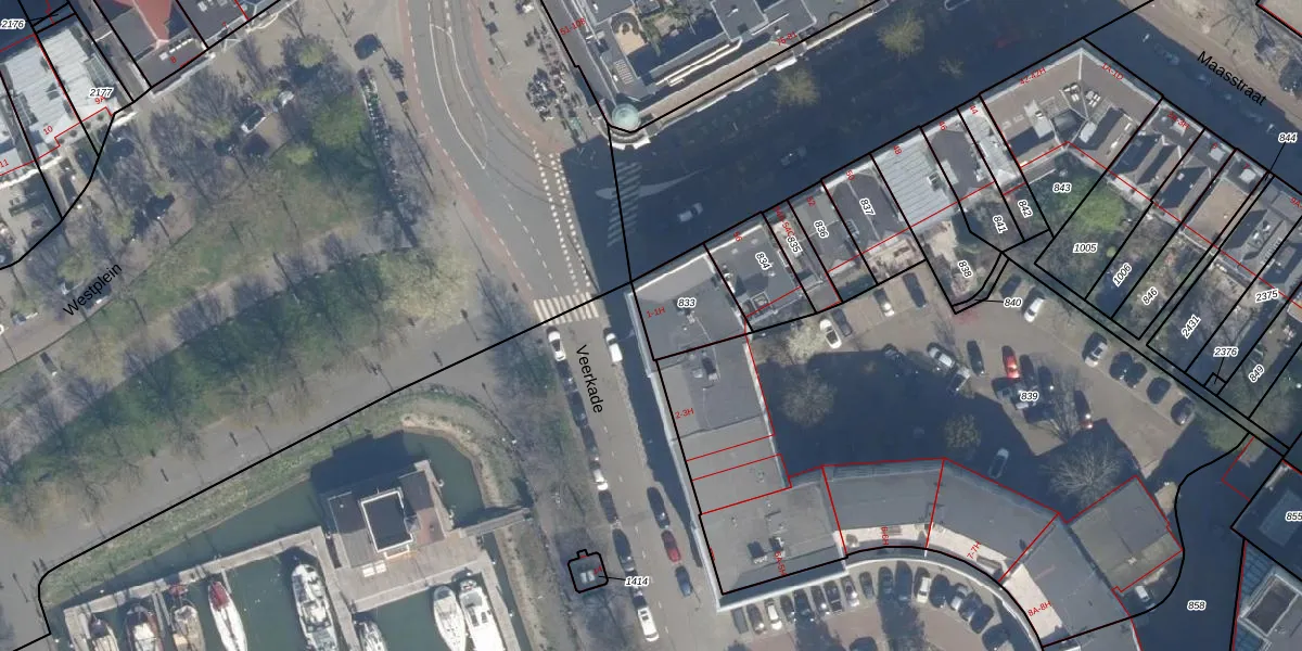 Veerkade 1-A is gelegen op kadastraal perceel RTD04AG833. Deze kadastrale aanduiding is uniek en wordt gebruikt door het Kadaster om eigendomsrechten en andere zakelijke rechten vast te leggen. Het perceel maakt onderdeel uit van de kadastrale gemeente Rotterdam.