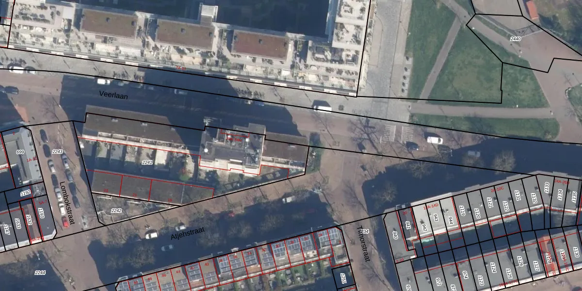 Veerlaan 28-B is gelegen op kadastraal perceel RTD05P2241. Deze kadastrale aanduiding is uniek en wordt gebruikt door het Kadaster om eigendomsrechten en andere zakelijke rechten vast te leggen. Het perceel maakt onderdeel uit van de kadastrale gemeente Rotterdam.