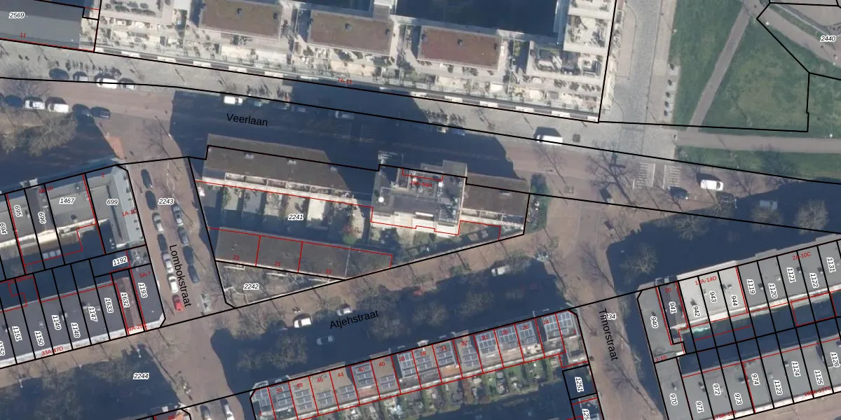 Veerlaan 36-A is gelegen op kadastraal perceel RTD05P2241. Deze kadastrale aanduiding is uniek en wordt gebruikt door het Kadaster om eigendomsrechten en andere zakelijke rechten vast te leggen. Het perceel maakt onderdeel uit van de kadastrale gemeente Rotterdam.