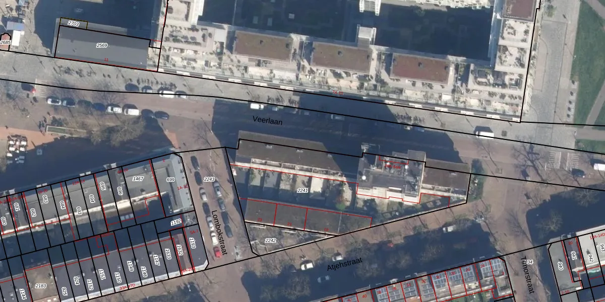 Veerlaan 54-B is gelegen op kadastraal perceel RTD05P2241. Deze kadastrale aanduiding is uniek en wordt gebruikt door het Kadaster om eigendomsrechten en andere zakelijke rechten vast te leggen. Het perceel maakt onderdeel uit van de kadastrale gemeente Rotterdam.