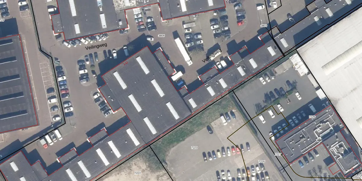 Het perceel waarop Veilingweg 12 staat heeft een oppervlakte van 1,3 ha. Dit is een zeer groot perceel. De perceeloppervlakte wordt geregistreerd door het Kadaster. Gedetailleerde informatie over de maten van dit perceel kunt u vinden in het rapport Kadastrale kaart met maatvoering van Veilingweg 12.