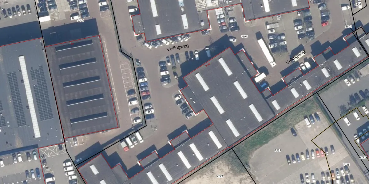 Het perceel waarop Veilingweg 16 staat heeft een oppervlakte van 1,3 ha. Dit is een zeer groot perceel. De perceeloppervlakte wordt geregistreerd door het Kadaster. Gedetailleerde informatie over de maten van dit perceel kunt u vinden in het rapport Kadastrale kaart met maatvoering van Veilingweg 16.