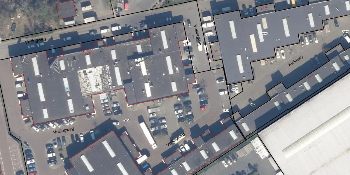 Het perceel waarop Veilingweg 46 staat heeft een oppervlakte van 1,3 ha. Dit is een zeer groot perceel. De perceeloppervlakte wordt geregistreerd door het Kadaster. Gedetailleerde informatie over de maten van dit perceel kunt u vinden in het rapport Kadastrale kaart met maatvoering van Veilingweg 46.